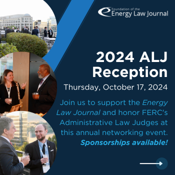 The Honorable Chief Judge Curtis L. Wagner, Jr. ALJ Reception honors the Federal Energy Regulatory Commission’s Administrative Law Judges, sponsored by the Foundation of the Energy Law Journal (Foundation), has become an annual occasion welcomed and enjoyed by the membership and friends of the Energy Bar Association. Each year, all ALJ judges will be invited as guests of the Foundation and in past years, nearly all of them have attended.