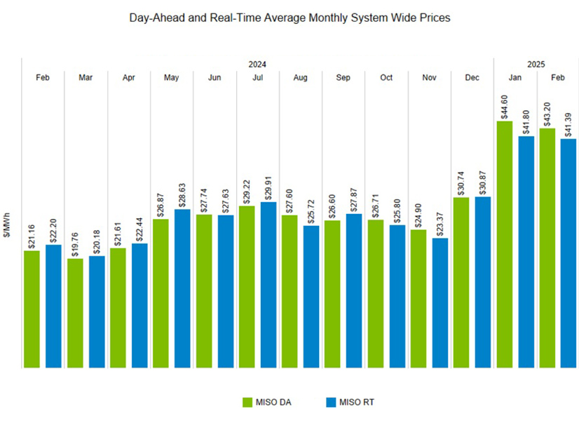 MISO’s real-time energy prices in February 2025 nearly doubled from a year earlier as the footprint saw higher load and gas prices.