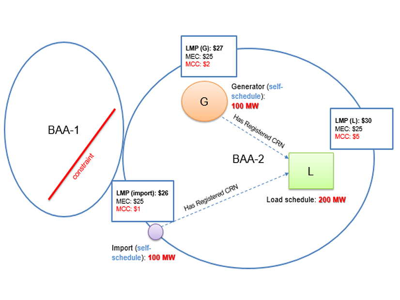 Example of exercise of firm OATT transmission rights through balanced source and sink self-schedules with LMPs. | CAISO