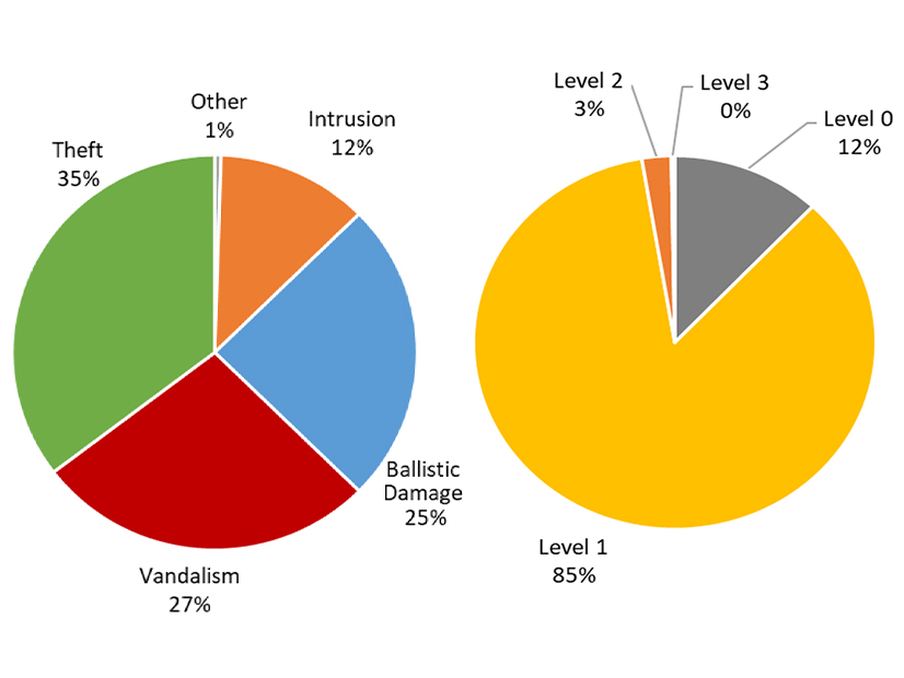 Left: Grid impacting incidents by type, 2023-24; Right: Security level breakdown, 2020-2024. | NERC