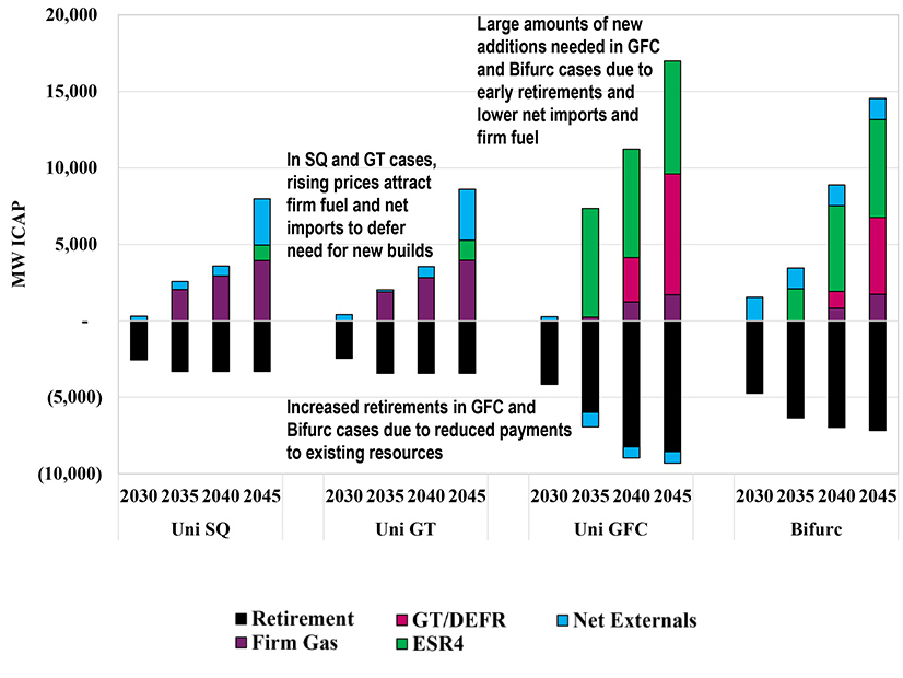 The statewide economic and reliability supply changes under several different scenarios that the MMU analyzed | Potomac Economics