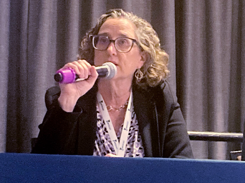 Molly Sterkel with the California Public Utilities Commission discusses the agency’s proposed Reliable and Clean Power Procurement Program (RCPPP) during a California Energy Transition Summit in Sacramento on May 6. She’s joined by Partha Malvadkar of CAISO. | © RTO Insider