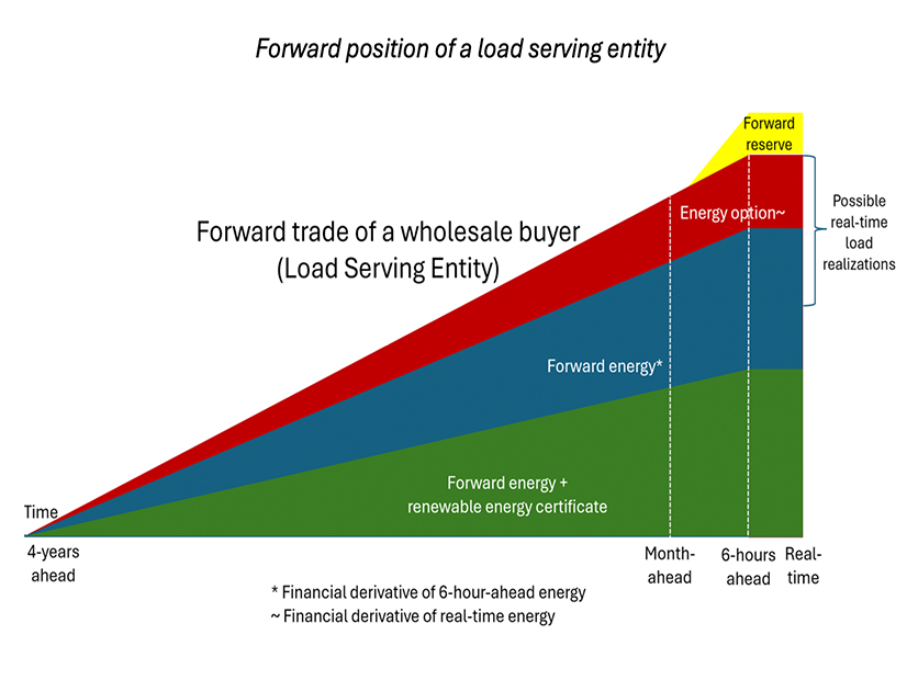 A graph from Forward Market Design showing a hypothetical market participant's forward position in its forward energy market concept | Forward Market Design LLC