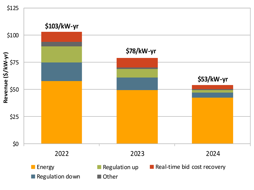 California’s fastest-growing energy resource — battery storage — is earning less net revenue each year, while capacity is forecast to continue to boom.