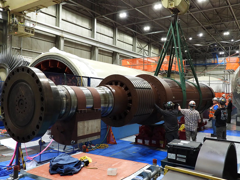 The 183-ton main generator rotor is removed for inspection in the turbine building as Holtec prepares its retired Palisades Nuclear Power Plant for a planned restart. | Holtec