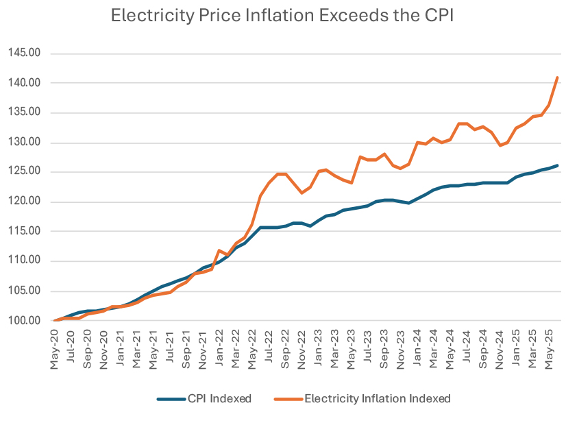 Economists frequently comment on rising inflation but miss the fact that electricity prices, which typically are stripped out of core inflation measurements, have consistently exceeded the consumer price index. The consistency of these price increases goes back longer than the AI-driven data center boom, and other inflationary factors. It is a price response to a policy problem: a lack of competition.