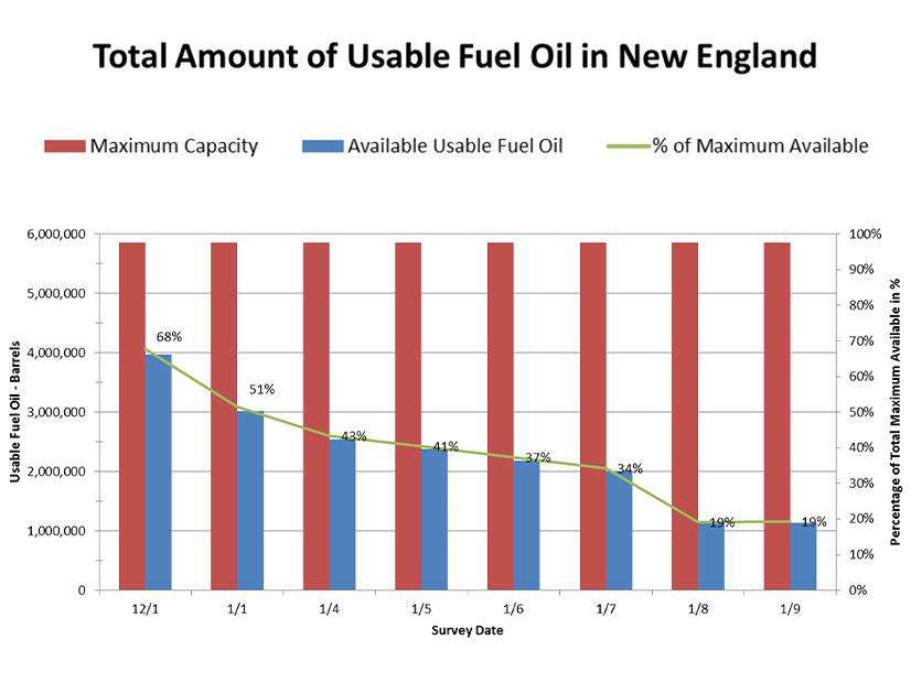 During the extended cold weather of 2017/18, for example, New England’s generators burned through nearly 3 million gallons of fuel oil reserves, with 2 million gallons consumed over just eight days. As can be seen in the graphic, oil reserves plummeted from 34% to 19% availability during the coldest 24-hour period, meaning the region was perhaps a single day away from rolling blackouts.