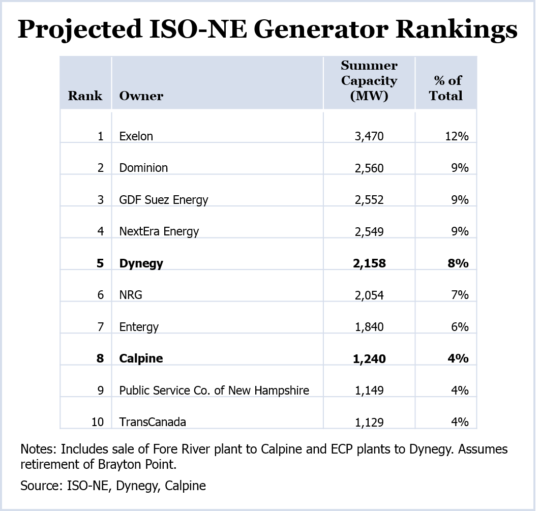 Dynegy’s purchase of Energy Capital Partners’ New England power plants will immediately make it a major participant in ISO-NE.