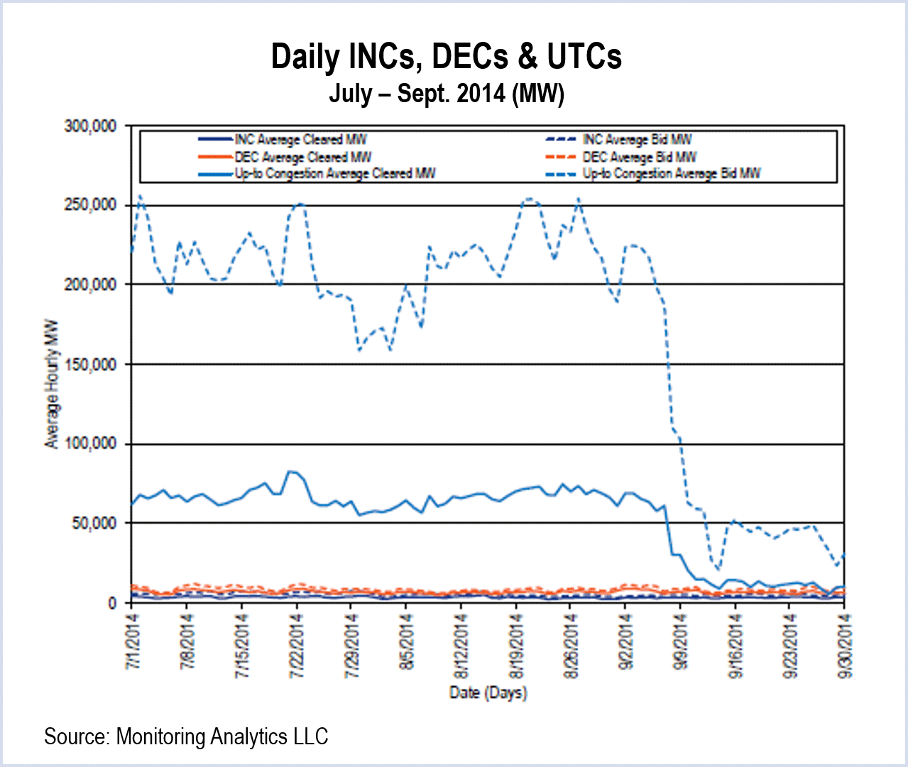 UTCs in PJM have dropped by about 85% since September, after the FERC said it might make the transactions liable for uplift assessments.