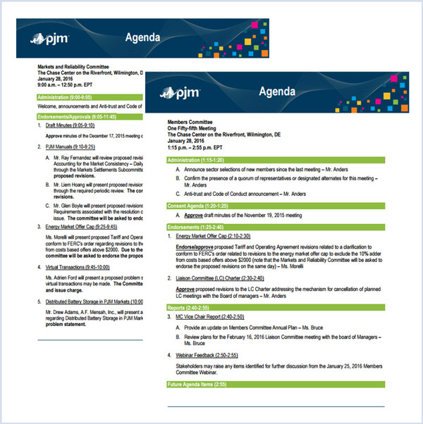 Our summary of the issues scheduled for votes at the PJM MRC and MC on Jan. 28, 2015. Each item is listed by agenda number, description and projected time of discussion, followed by a summary of the issue and links to prior coverage.