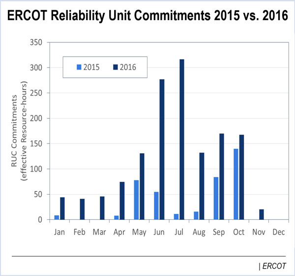 ERCOT reliability unit commitment activity increased more than three-fold in 2016, staff said at the Technical Advisory Committee meeting last week.