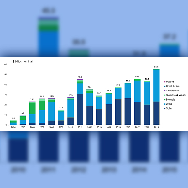 U.S. renewable investments jumped 28% to $55.5 billion in 2019, showing clean energy is thriving despite the government’s failure to enact climate policies.