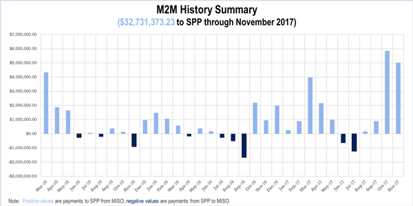 SPP’s market-to-market (M2M) process with MISO again resulted in a large payment to SPP for November operations.