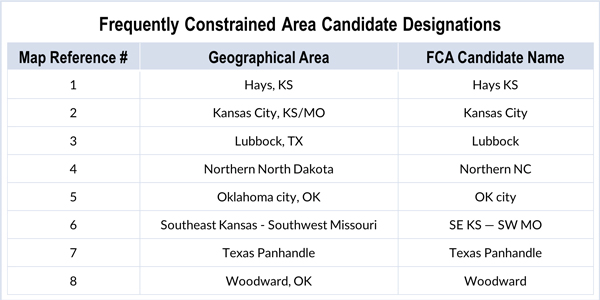 FERC accepted the recommendations of SPP’s Market Monitoring Unit to eliminate the Woodward frequently constrained area (FCA) in Northwest Oklahoma.