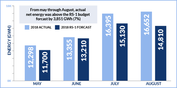 NYISO experienced six days with peak loads of more than 31,000 MW this summer, compared with last summer’s actual peak of 29,677 MW.