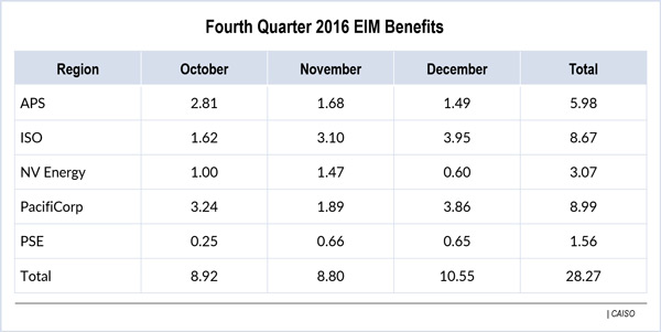 EIM Benefits up 8% in Q4 with APS, Puget Sound Additions