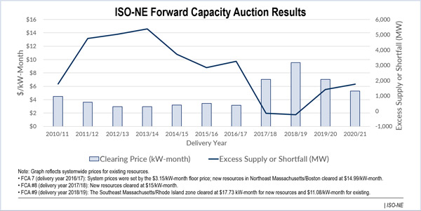 ISO-NE Capacity Prices Fall 25%, Lowest Since 2013