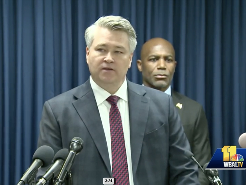 Tom Sobocinski, special agent in charge of the FBI's Baltimore field office, at a press conference on Monday. Behind him is Maryland U.S. Attorney Erek Barron. | WBAL-TV