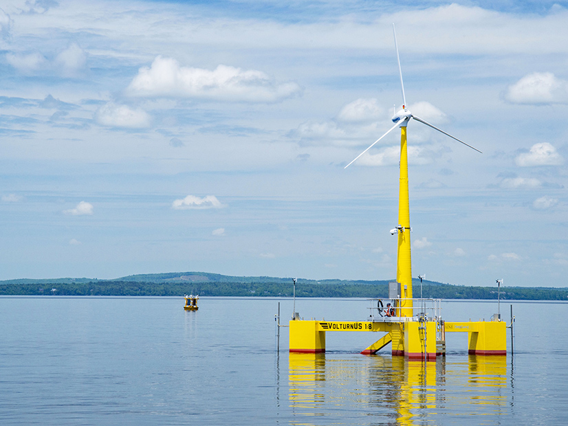 The University of Maine's 1:8 scale experimental floating wind turbine is shown. | University of Maine
