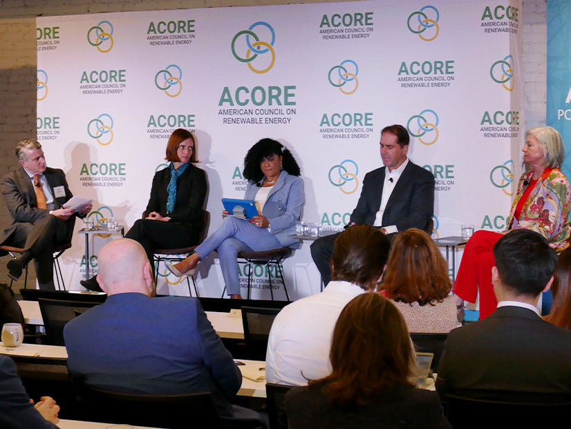 Panelists at ACORE's Policy Forum (from left) Dan Feldman of Covington & Burling, Becca Jones-Albertus of DOE, Lisa Morris of the National Minority Supplier Development Council, Troy Patton of Ørsted Americas and Kathy Weiss of Nextracker | © RTO Insider LLC