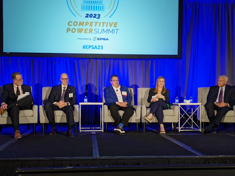RTO Insider Editor Rich Heidorn Jr. (left) moderates a panel on cyber and physical security with (from left) FBI Special Agent John J. Rovinski Jr.; Manny Cancel, CEO of E-ISAC; Mara Winn, deputy director for preparedness, policy and risk analysis for the Department of Energy's Office of Cybersecurity, Energy Security, and Emergency Response (CESER); and former New Jersey regulator Richard S. Mroz, an adviser to Protect Our Power | © RTO Insider LLC
