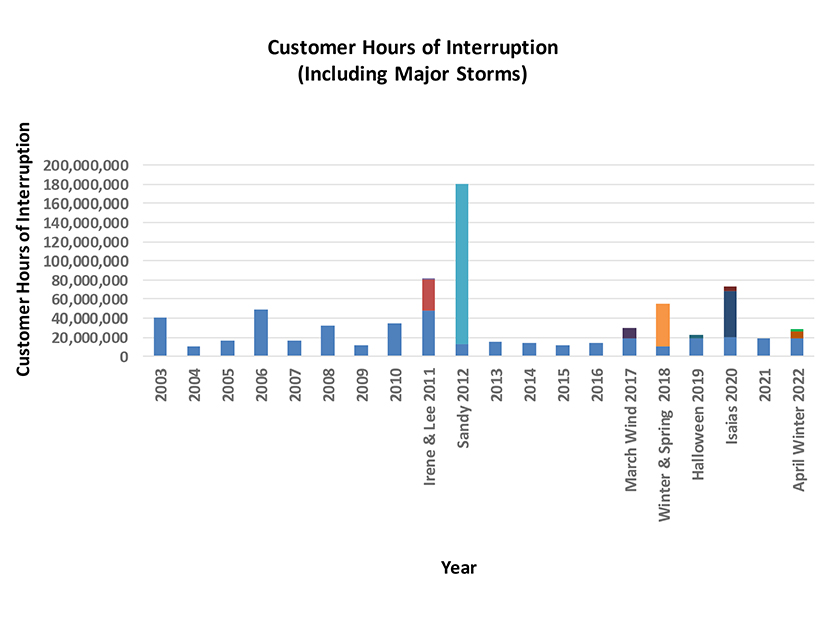 Frequency and duration of power outages decreased in New York in 2022 outside of major storms, but one utility missed its target for the fourth year in a row.