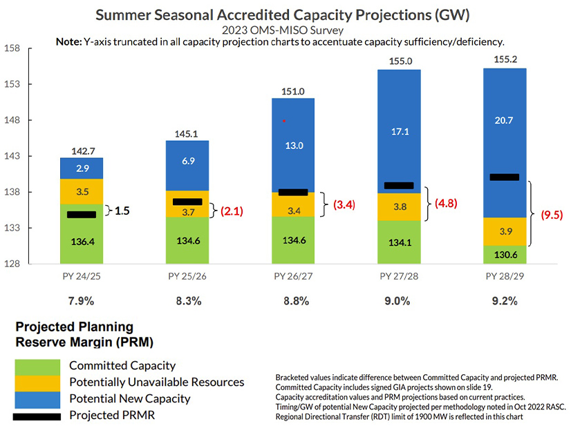 MISO and the Organization of MISO States’ resource adequacy survey warned that a more than 9-GW shortfall could loom by the decade’s end, though it painted an adequate supply picture for the upcoming year.
