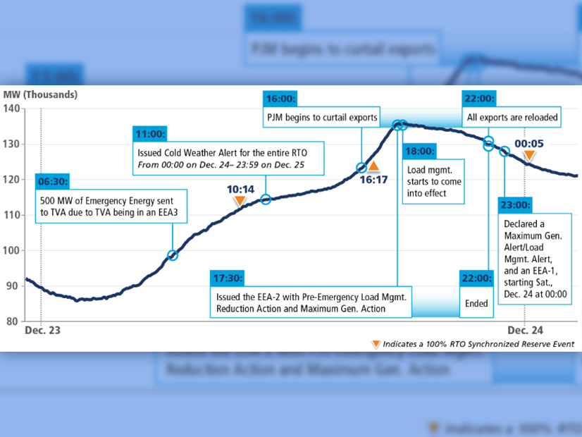 PJM detailed the emergency actions it took on Dec. 23 and 24 as a sharp drop in temperatures brought record-setting loads and forced outage rates. | PJM