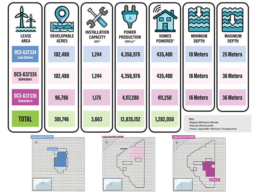The Biden administration will auction the first offshore wind leases in the Gulf of Mexico — about 300,000 acres that can produce 3.7 GW — on Aug. 29.