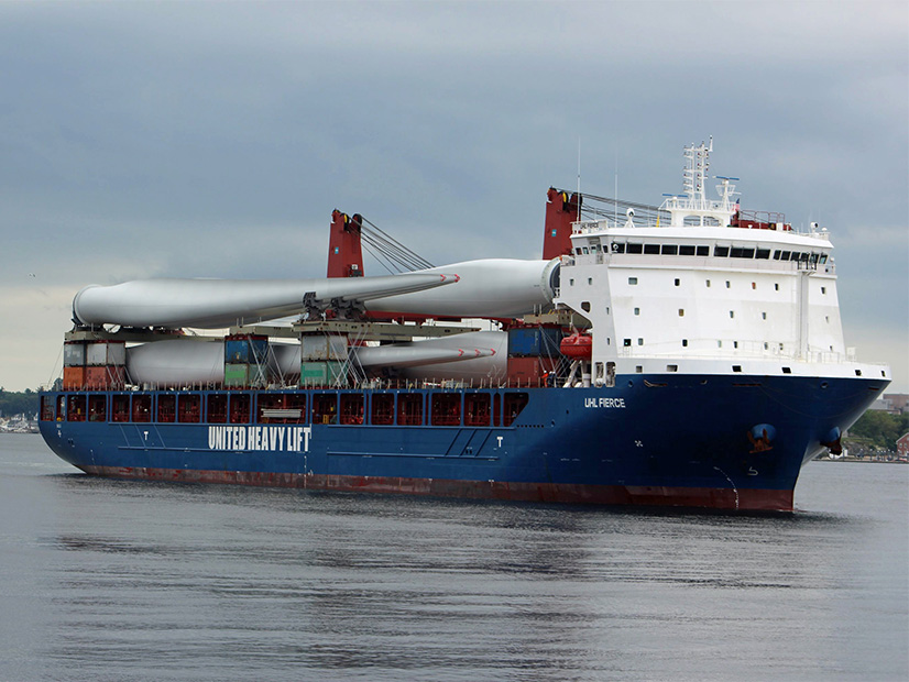 A shipment of turbine blades for the South Fork Wind project arrives in New London, Conn., earlier this month. | Ørsted U.S.