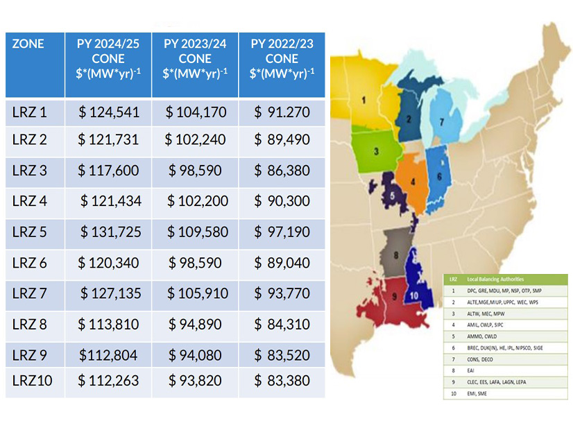 MISO has calculated significant increases in its annual cost of new entry for use in its capacity auction in the 2024/25 planning year.