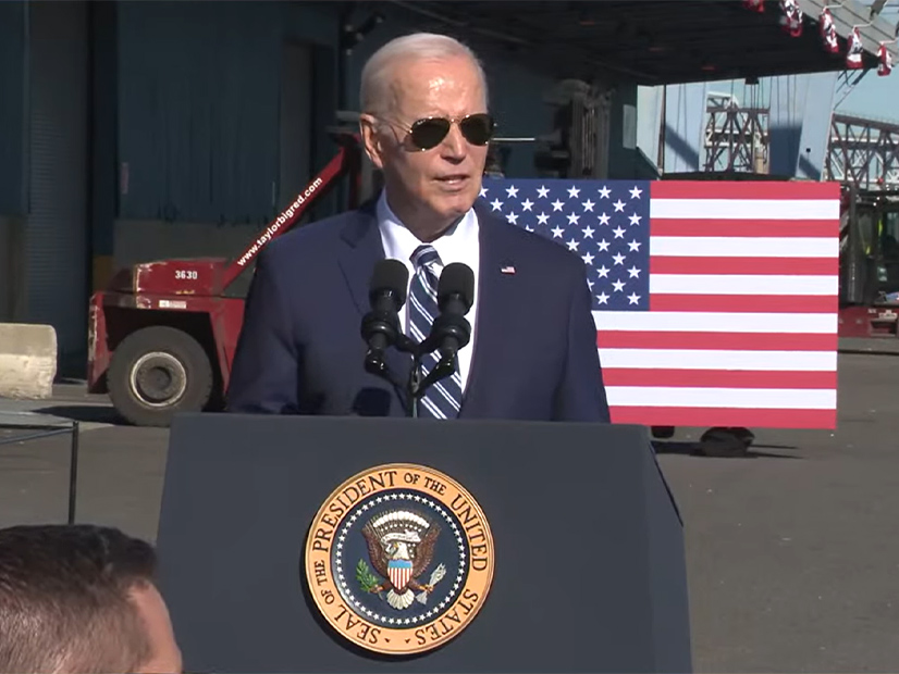 With the Port of Philadelphia as a backdrop, President Joe Biden talks about the Mid-Atlantic Clean Hydrogen Hub, one of seven regional hubs announced Friday. | The White House