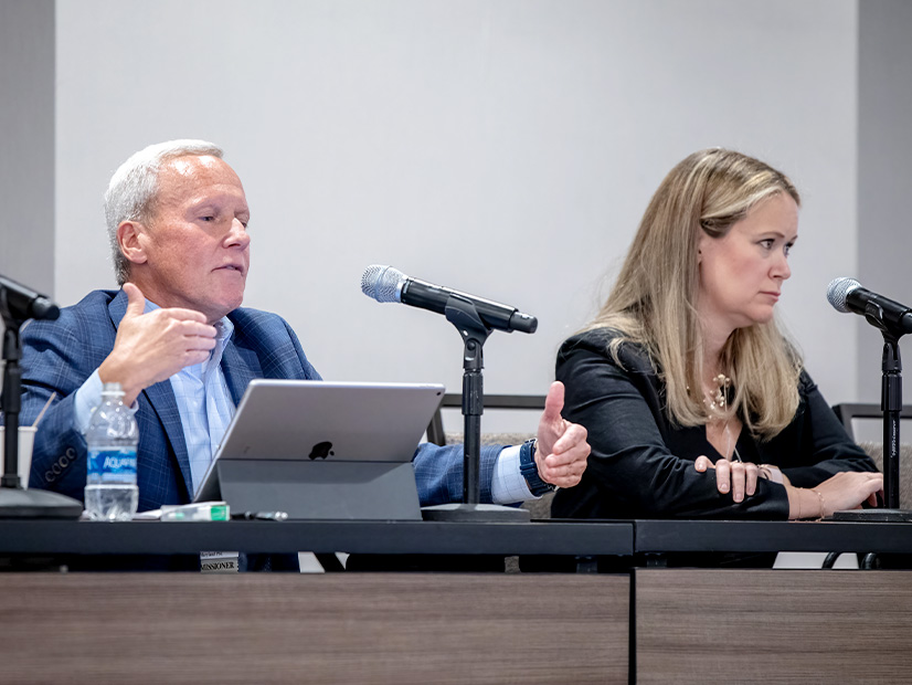 Michael Richard (left), of the Maryland Public Service Commission (PSC), and Pamela Quinlan, principal of GQ New Energy Strategies, moderated a discussion on RTO governance during the Organization of PJM States Inc. annual meeting on Oct. 17. | © RTO Insider LLC