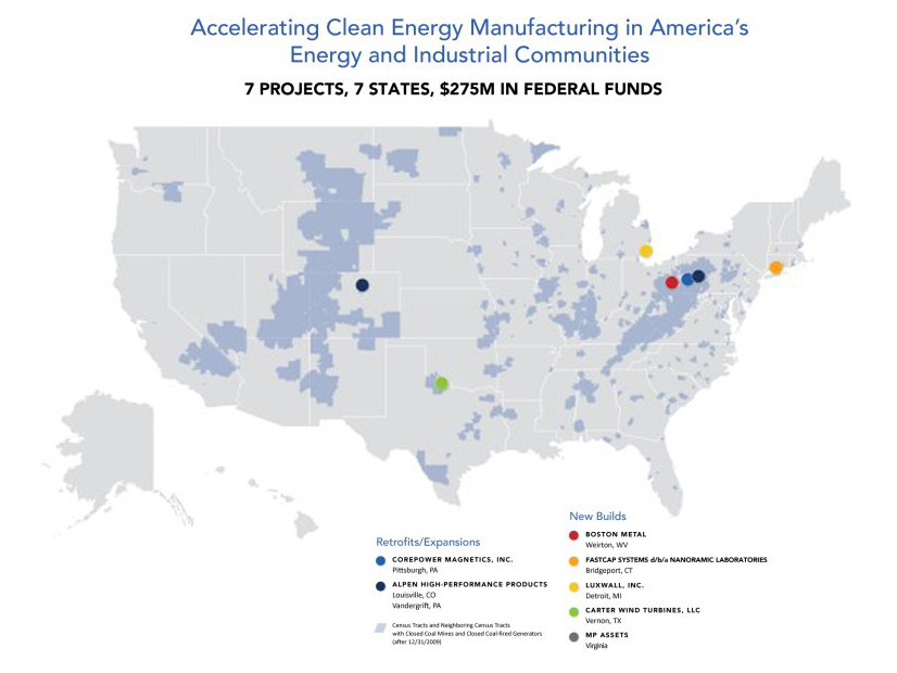 The Department of Energy said it would provide $275 million for seven projects around the country that are meant to bolster domestic clean energy supply chains.