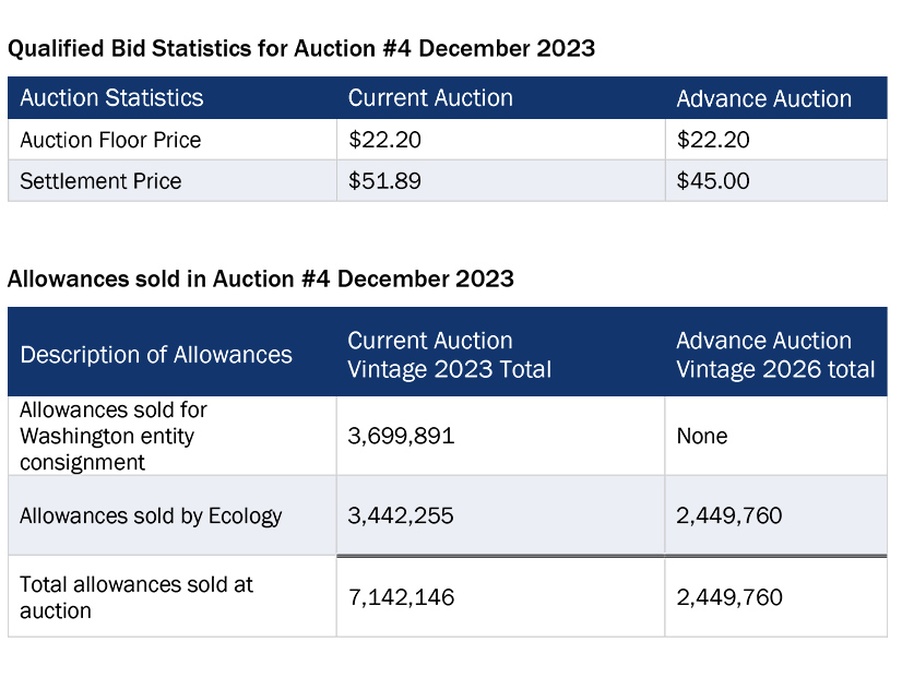 Washington state raised another $373.6 million in its last carbon emissions allowance auction for 2023, the Ecology Department reported.