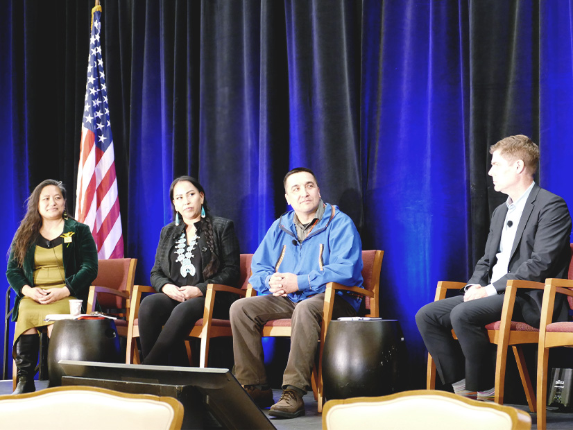 A CEC Energy Innovation Summit panel titled 'Co-creation of knowledge of Traditionally Underrepresented Communities.' From left, Mari Rose Taruc, Lisa Redsteer, Chad Nordlum, Michael Wara. | © RTO Insider LLC