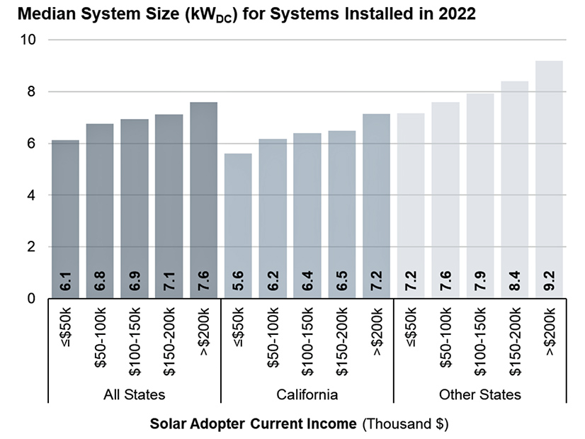 Researchers found a direct correlation between homeowner income and size of rooftop solar array. | Lawrence Berkeley National Laboratory