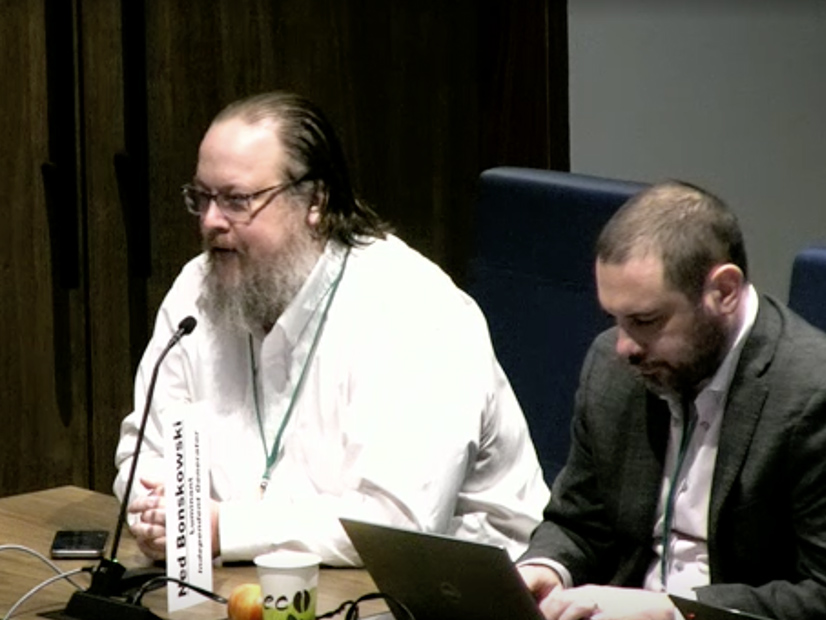 TAC member Eric Goff (left), with Luminant's Ned Bonskowski, shares the joint commentators' view on NOGRR245. | ERCOT