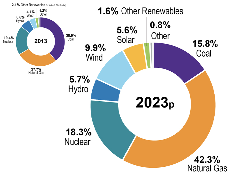A slide from EEI's presentation to Wall Street showing how its members' generation mix has changed over the last decade. | EEI
