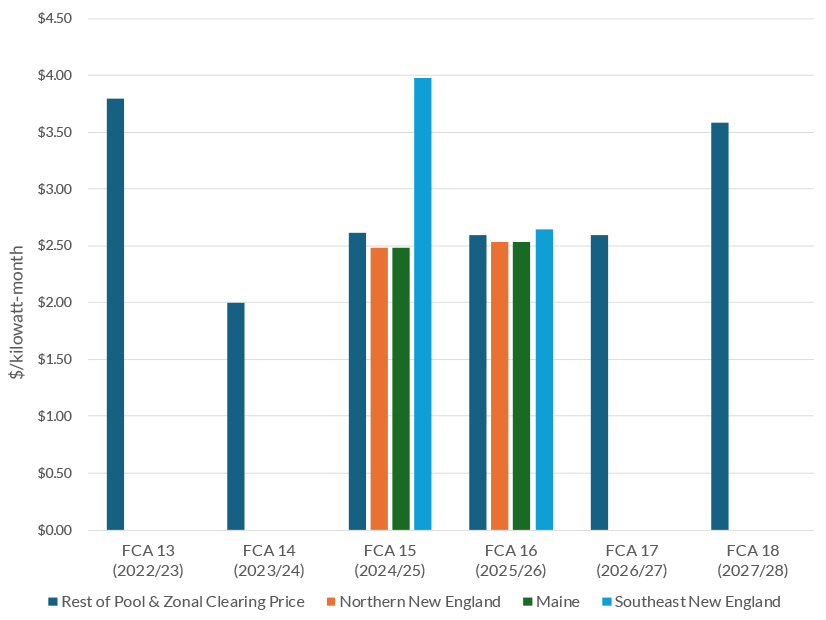 ISO-NE's capacity prices cleared at $3.58/kW-month in FCA 18, a nearly $1 increase over last year.