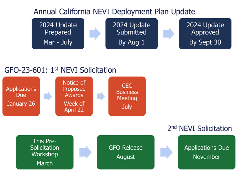 The California Energy Commission and the California Department of Transportation sought feedback on the first round of solicitations from the National Electric Vehicle Funding Infrastructure Program at a March 12 meeting. | California Energy Commission