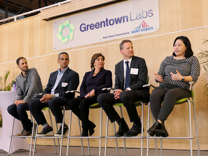 Panel from left: Ian Coss, PRX Productions; Joe Curtatone, Northeast Clean Energy Council; Secretary Rebecca Tepper, Mass. Executive Office of Energy and Environmental Affairs; Jeremy McDiarmid, Advanced Energy United; and Maria Robinson, U.S. Department of Energy Grid Deployment Office | © RTO Insider LLC
