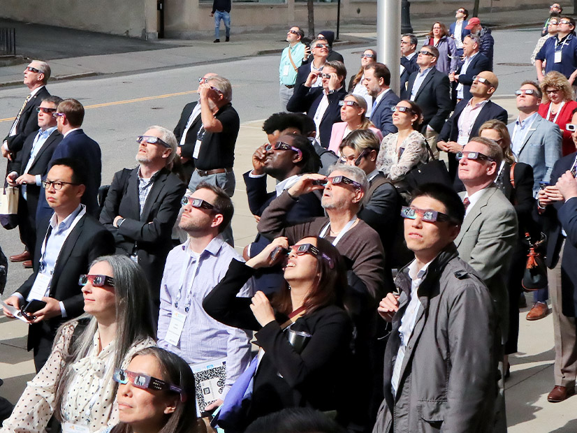 Attendees at the New York Energy Conference take a break to look at the eclipse in Albany, N.Y., on April 8. | © RTO Insider LLC