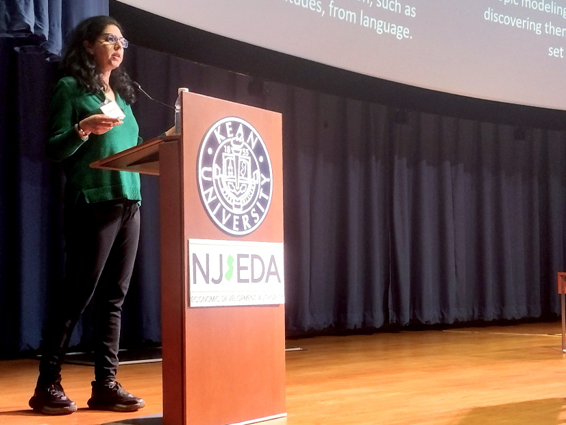 Aparna Varde, a professor at Montclair State University, addresses the Wind Institute Research Symposium and outlines the research she conducted into the sentiment of social media posts toward offshore wind projects. | © RTO Insider LLC