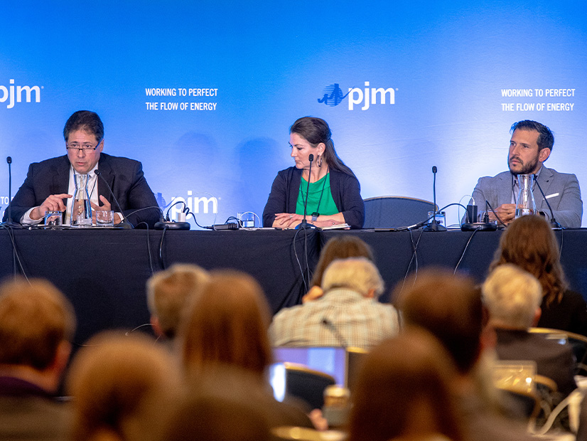 From left: PJM's David Souder, Chantal Hendrzak and Emanuel Bernabeu speak at the 2024 PJM Annual Meeting. | © RTO Insider LLC
