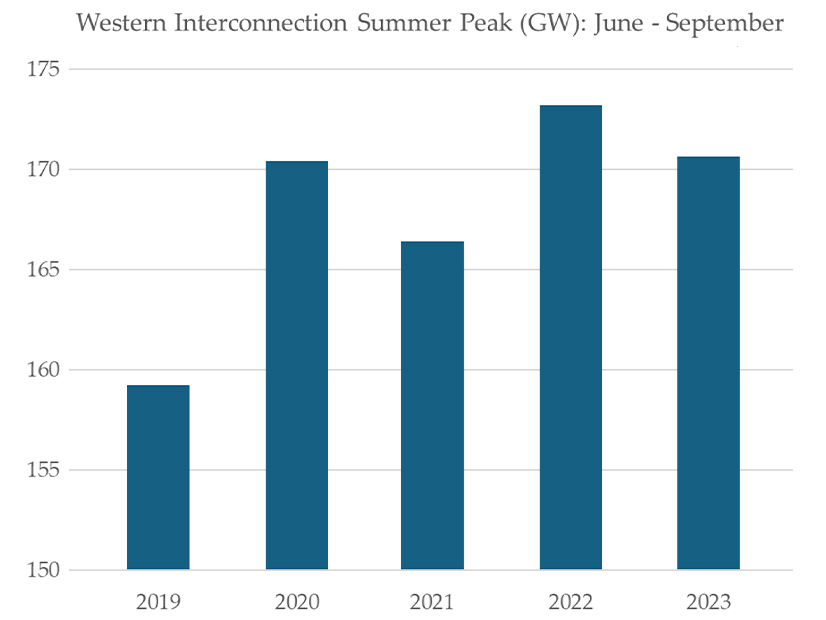 Peak demand in the summer has been increasing steadily in the West over the past four years, according to WECC. | WECC