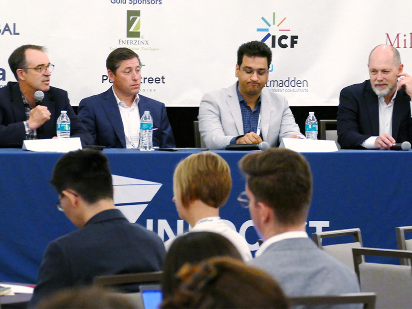 Grid Strategies' Rob Gramlich addresses the Infocast Transmission & Interconnection Summit as (from left) Greg Mathe, Dominion Energy; Mike Tabrizi, Zero-Emission Grid; and Grid United President Kris Zadlo listen. | © RTO Insider LLC