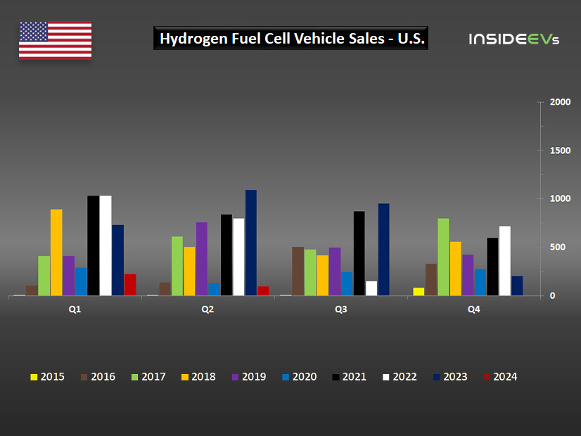 Sales of electric vehicles in the U.S. are showing some signs of recovery, while the market for hydrogen fuel cell vehicles has practically collapsed.