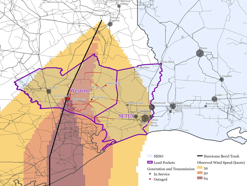 MISO said damage wrought from Hurricane Beryl triggered an overnight electrical island in a Southeastern Texas load pocket.