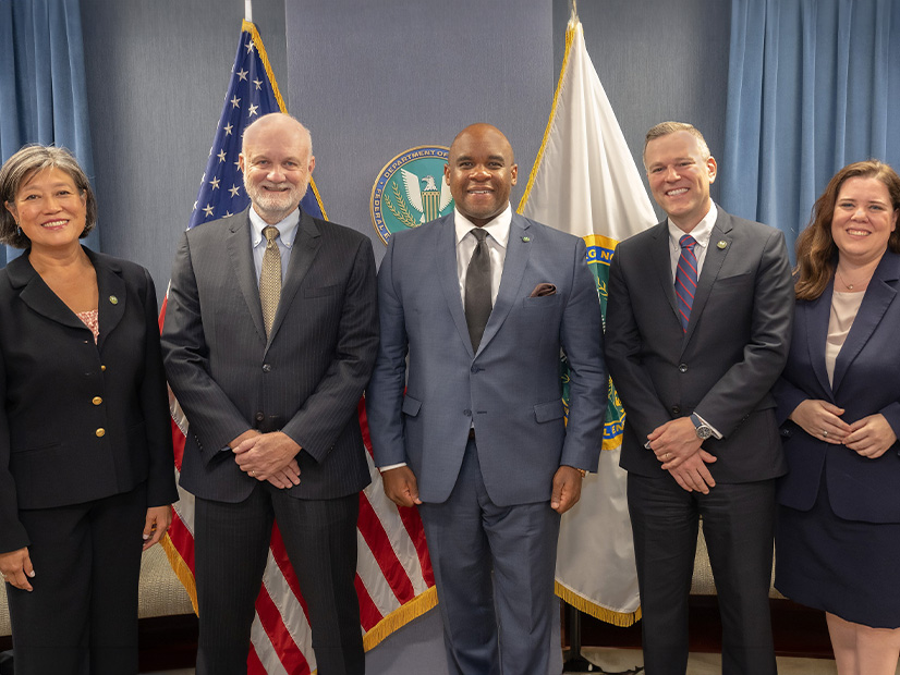 From left: FERC Commissioners Judy Chang, Mark Christie, Willie Phillips (chair), David Rosner and Lindsay See after the July open meeting, the first with all three new members appointed by President Joe Biden | FERC